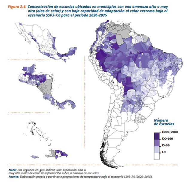 • Cerca de 195.000 escuelas, 15 millones de estudiantes y 500.000 docentes se encuentran en zonas de alto riesgo térmico.